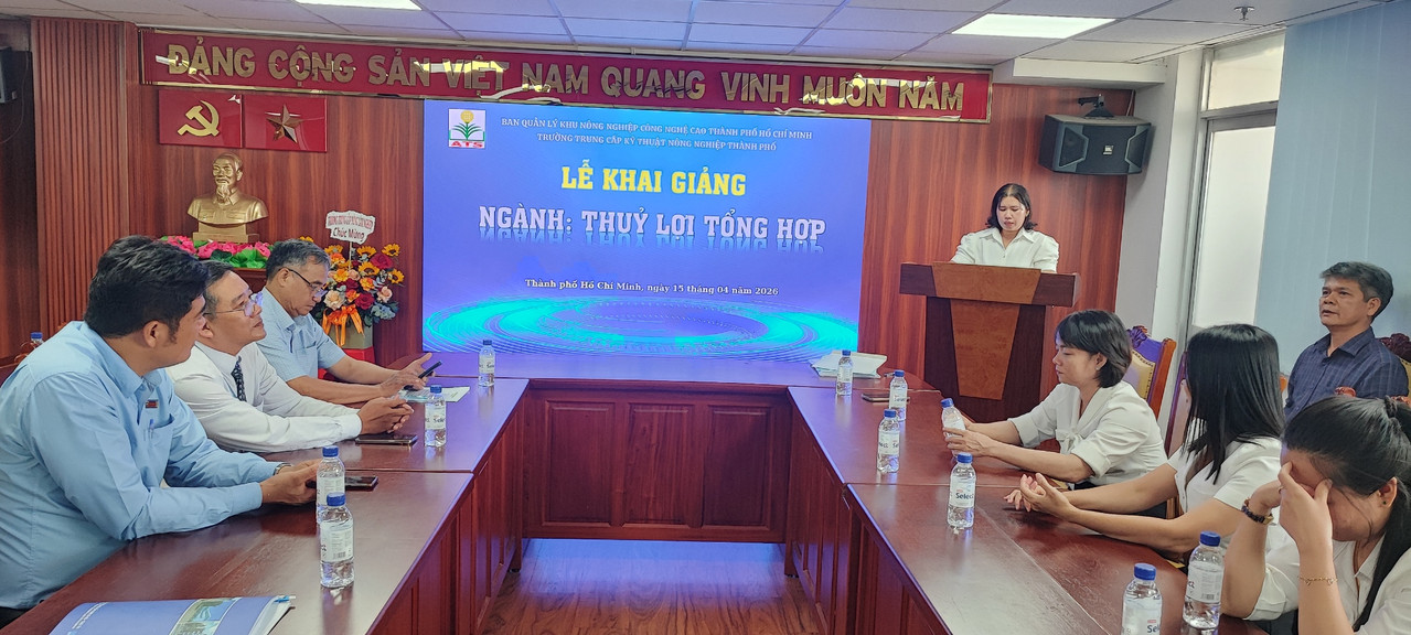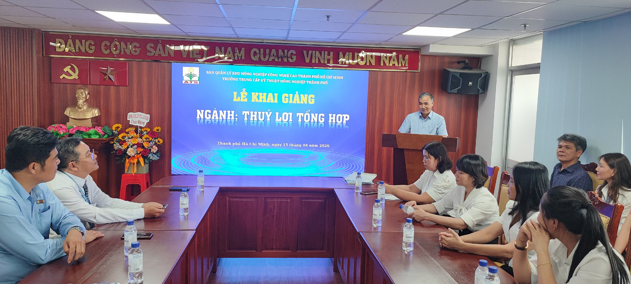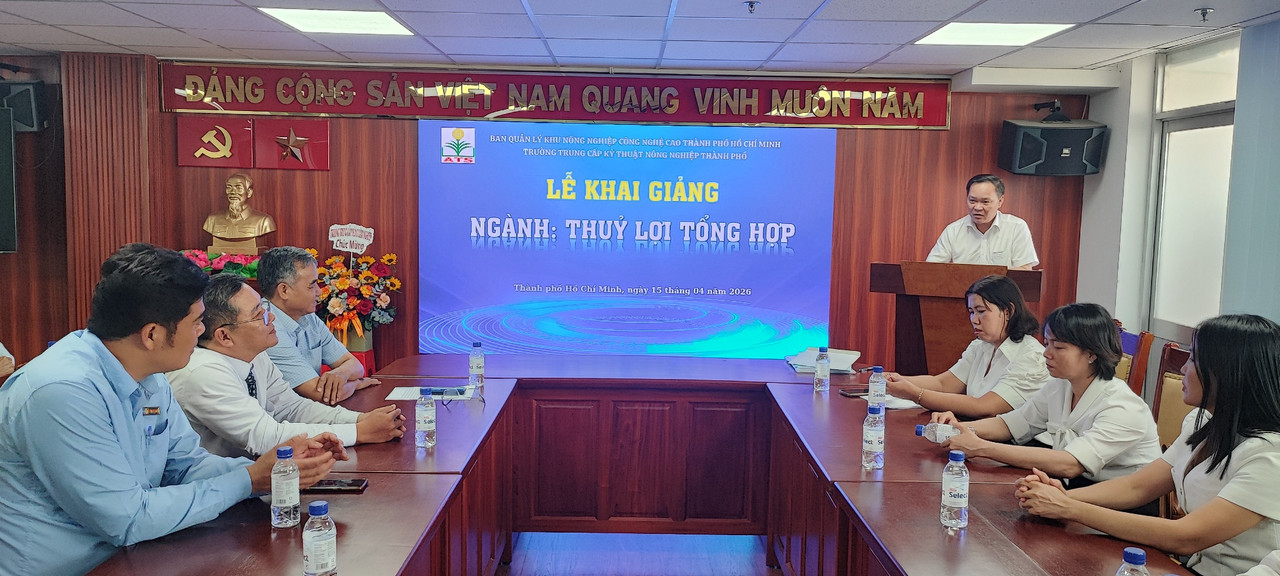Ngày 15/04/2026, tại Hội trường Ban Quản lý Khu Nông nghiệp Công nghệ cao TP. Hồ Chí Minh, Trường Trung cấp Kỹ thuật Nông nghiệp Thành phố đã long trọng tổ chức Lễ Khai giảng ngành Thủy lợi tổng hợp năm 2026.