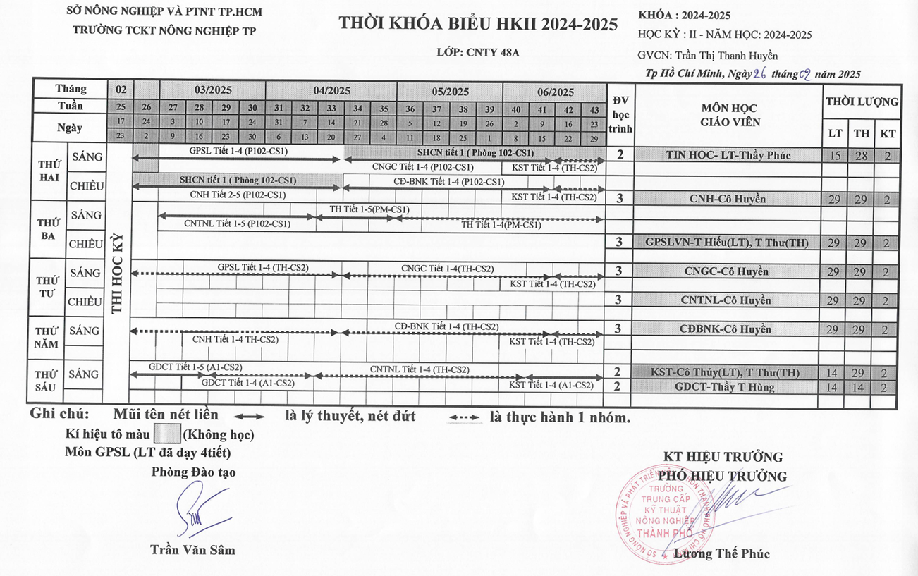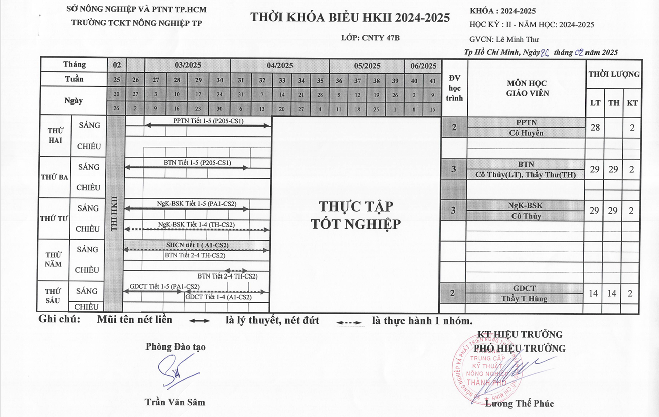 THỜI KHÓA BIỂU - TIẾN ĐỘ ĐÀO TẠO